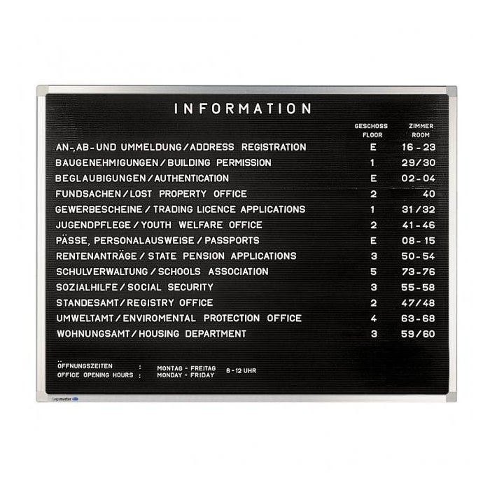 Klasická informačná tabuľa s povrchom s drážkami z čiernej gumy na zobrazovanie správ, oznámení a rôznych informácií. Hliníkový rám so svetlosivými rohovými spojkami. Dodávaná s montážnou sadou. Rozmery 40 x 60 cm.