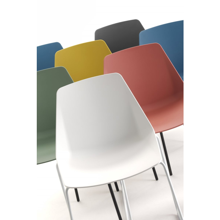 Plastová stolička lastúrového tvaru, oceľová konštrukcia.