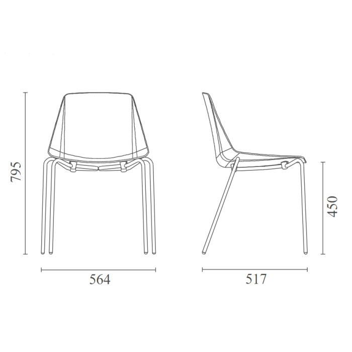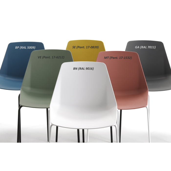 • oceľová konštrukcia na štyroch nohách, povrch lakovaný práškovou farbou v odtieničierna N (RAL 9017), biela W (RAL 9016) alebo chrómovaný C (rúrka Ø16 mm, hr. steny 2 mm), ďalší typ konštrukcie lyžinového typu na dopyt, vrátane barovej verzie (tyčová oceľ Ø12 mm)
