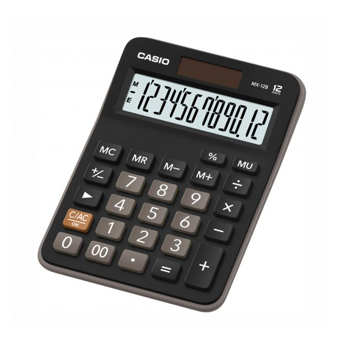 Stolová kalkulačka s 12-miestnym LCD displejom a plastovými tlačidlami. Opravné tlačidlo a tlačidlo na výpočet marže.