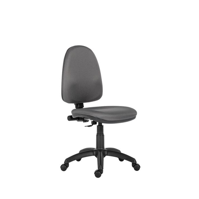 Čalúnená kancelárska stolička s vysokou opierkou.