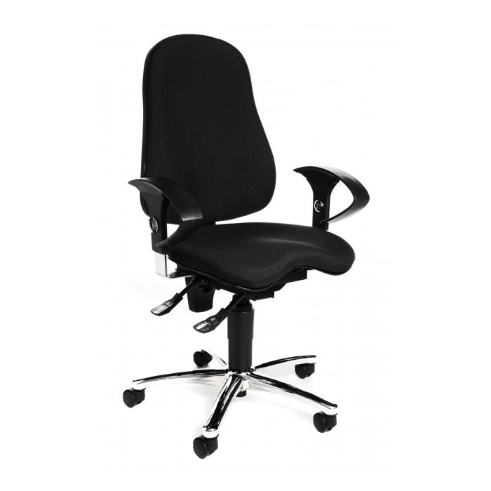 • pevný a komfortný permanentne kontaktný mechanizmus, stabilný kovový chrómovaný kríž so samobrzdiacimi bezpečnostnými kolieskami