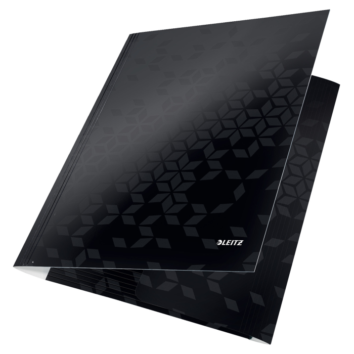 Obal s tromi chlopňami a elastickými gumičkami rady WOW v žiarivej farbe zo špeciálneho kartónu s perfektným farebným efektom. PP laminácia chráni farby a dáva výrobku lesklý vysokokvalitný vzhľad. Farba: čierna