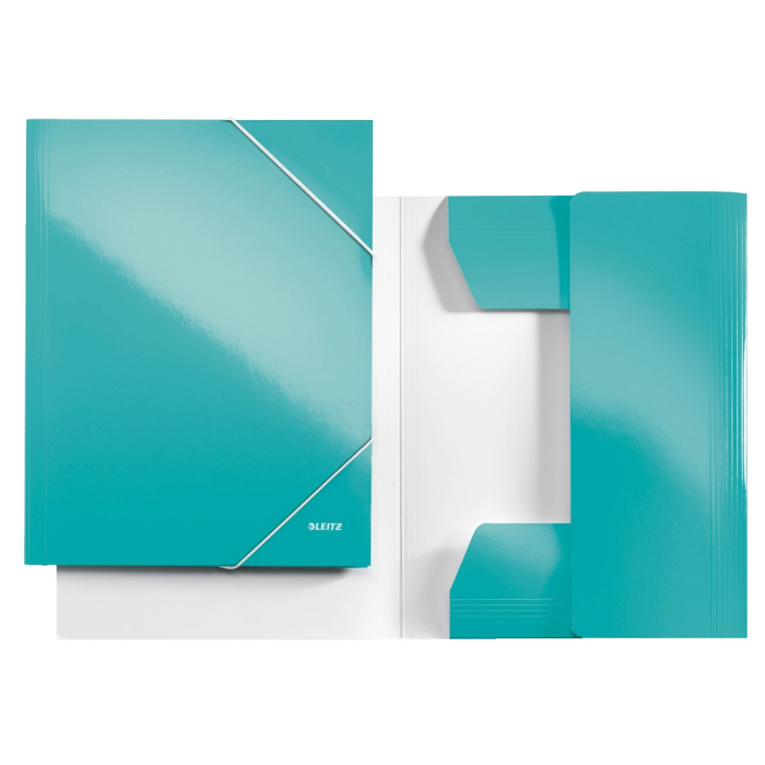 Obal s tromi chlopňami a elastickými gumičkami rady WOW v žiarivej farbe zo špeciálneho kartónu s perfektným farebným efektom. PP laminácia chráni farby a dáva výrobku lesklý vysokokvalitný vzhľad. Farba:ľadovo modrá