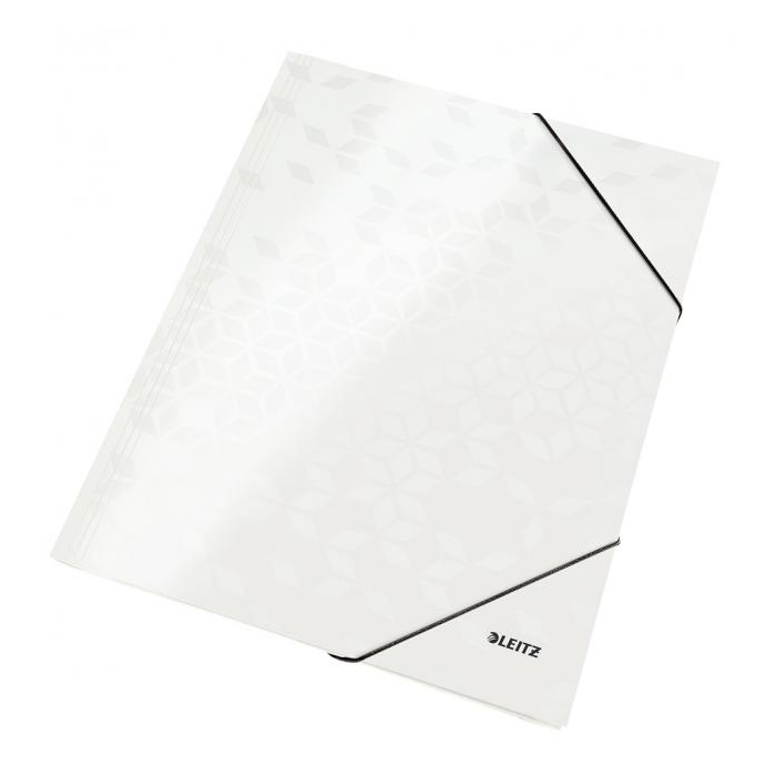 Obal s tromi chlopňami a elastickými gumičkami rady WOW v žiarivej farbe zo špeciálneho kartónu s perfektným farebným efektom. PP laminácia chráni farby a dáva výrobku lesklý vysokokvalitný vzhľad. Farba: perleťovo biela