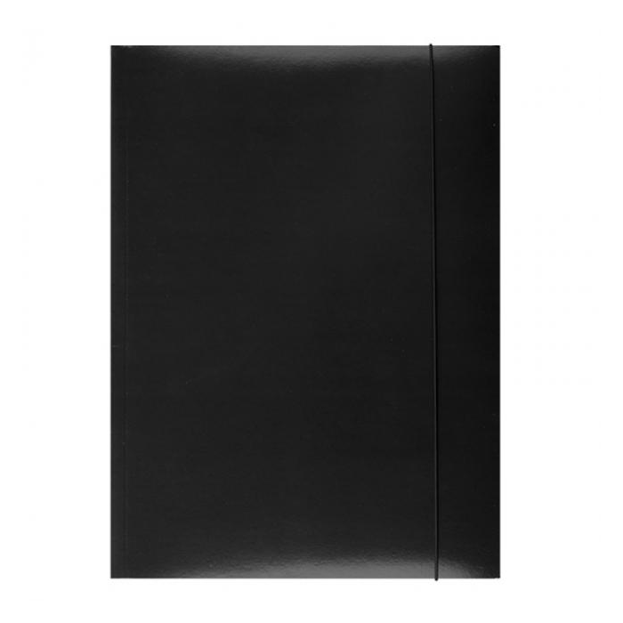 Obal s tromi chlopňami so zvislou gumičkou vo farbe obalu. Materiál 300g kartón. Rozmery 232 × 320 mm.