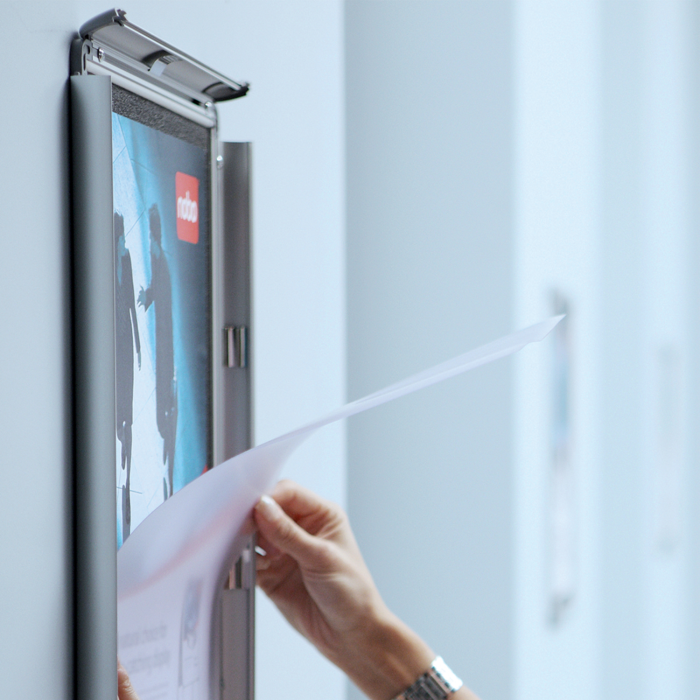 Rám na zobrazovanie informácií, plagátov alebo propagačných ponúk do interiéru aj exteriéru. Mechanizmus otvárania na  klip, antireflexná fólia z PVC na ochranu pred špinou a prachom, vkusný hliníkový rám s tmavosivými rohovými spojkami. Formát A3. Rozmery v × š × h : 335 × 458 × 17 mm. Dodávaný s montážnou sadou.
