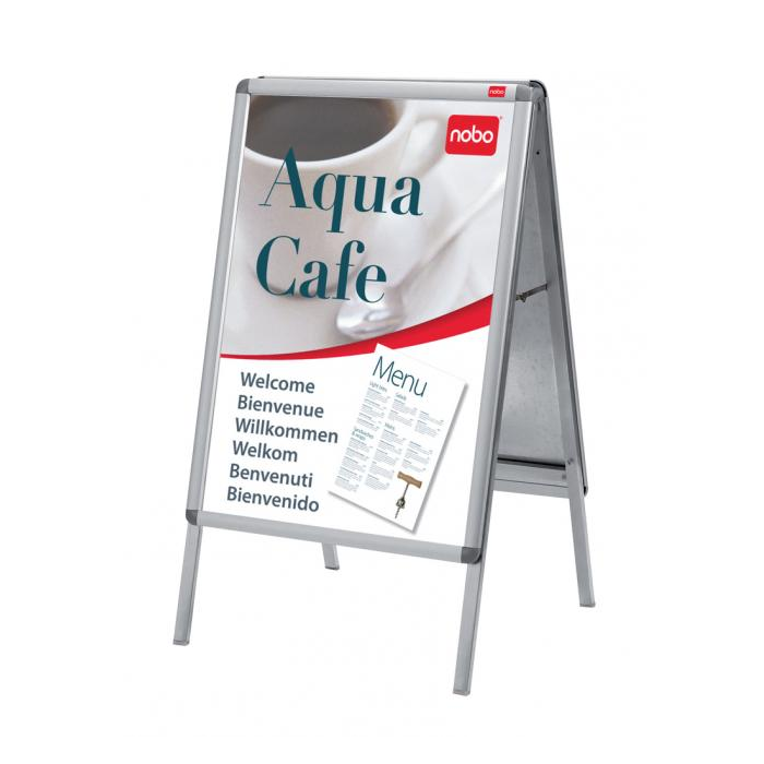 Rám na zobrazovanie informácií, plagátov alebo propagačných ponúk do interiéru aj exteriéru. Mechanizmus otvárania na  klip, antireflexná fólia z PVC na ochranu pred špinou a prachom, vkusný hliníkový rám s tmavosivými rohovými spojkami. Verzia „A“ so stojanom. Formát A0. Rozmery v × š × h : 1 428 × 790 × 893 mm.