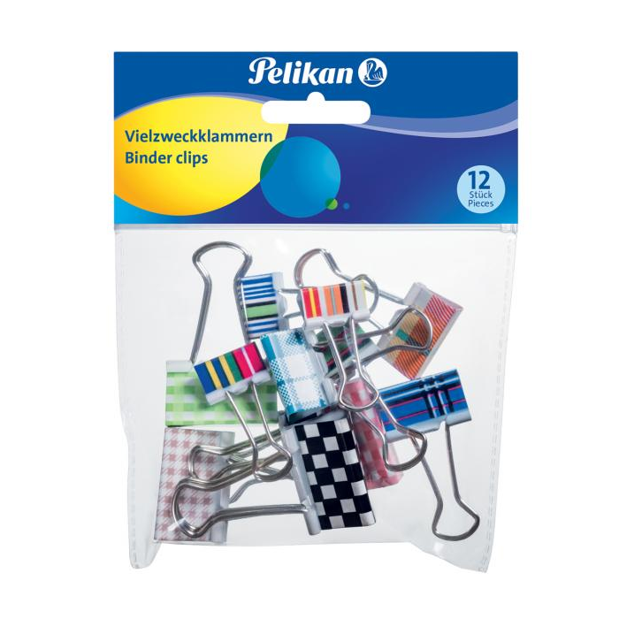 Klipy na dokumenty Pelikan farebné, 12 ks, mix farieb a veľkostí