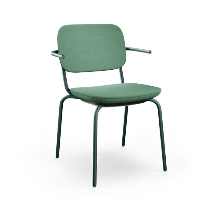 Normo je nová stolička pre prácu a rokovanie. Je všestranná a odolná, bola vytvorená v súlade s princípmi cirkulárnej ekonomiky.Recyklovateľný výrobok - na konci jeho životnosti je možné všetky súčiastky rozobrať, rozdeliť na suroviny a plne recyklovať. Je vyrobená s použitím recyklovaných materiálov, namiesto prírodných - z 100% recyklovaného polypropylenu.Stolička má kovovú kostru, model s krátkými podrúčkami je možné zavesiť na dosku stola. Je stohovateľná pre ľahké skladovanie a prepravu/ až 4 stoličky/.Stolička je vyrobená bez lepidel a sponiek.Uhlíková stopa pri jej výrobe je znížená na polovicu - len 28 kg CO2 . K dispozici je vo 12 konfiguráciach.