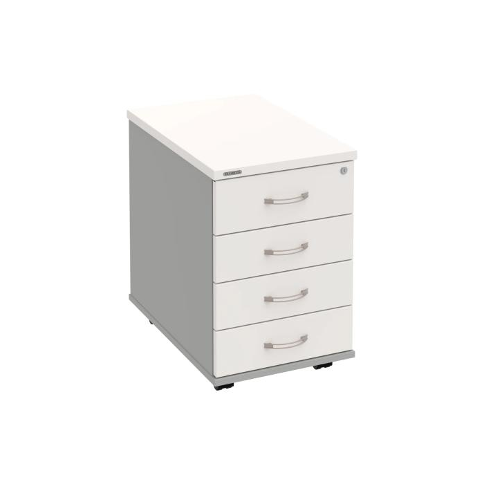 Kontajnery - všetko uložené a vždy poruke. Kontajnery sa väčšinou umiestňujú pod stoly. Mobilné modely sú vybavené kolieskami, je možné ich premiestniť podľa potreby. Základným materiálom korpusov je kvalitná laminovaná drevotriesková doska hrúbky 18 mm. Pre dlhšiu životnosť je na horný diel korpusu použitá doska, ktorej hrúbka je 25 mm. Korpusy a čelá zásuviek sú chránené proti poškodeniu hranou ABS 2 mm. Kontajnery sú vybavené zámkom s centrálnym zamykaním. Vďaka integrovanému systému STOP-CONTROL s centrálnym zámkom u väčšiny kontajnerov sa nemusíte báť prevrhnutiu kontajnera alebo prípadného privretia ruky. Systém zaručí, že pri otvorení jednej zásuvky sa ostatné zásuvky automaticky zablokujú. Zásuvky sú z plastu, ktorý je ľahko umývateľný a vhodný pre jednoduchú údržbu. Praktickou súčasťou vrchnej zásuvky je prehľadný organizér a priestorové deliace priečky. Vaše ceruzky, sponky a ďalšie kancelárske potreby budú vždy na poriadku. Organizér a deliace priečky sú súčasťou každého kontajnera. Na kontajnery Hobis sa vzťahuje päťročná záruka.