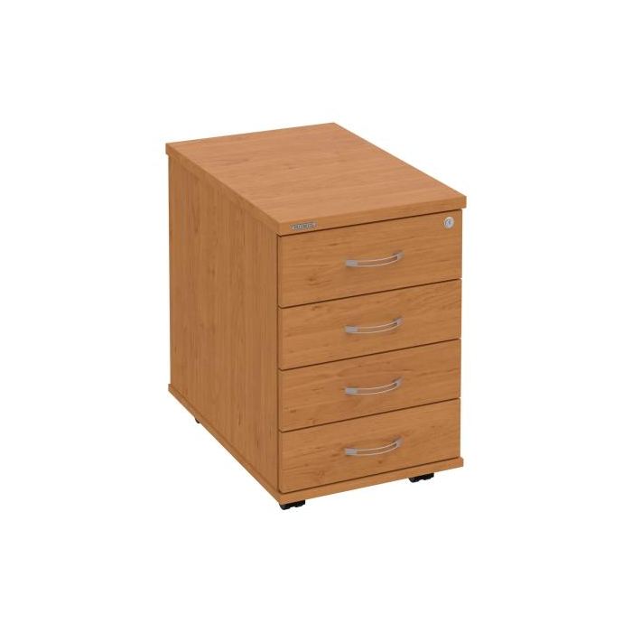 Kontajnery - všetko uložené a vždy poruke. Kontajnery sa väčšinou umiestňujú pod stoly. Mobilné modely sú vybavené kolieskami, je možné ich premiestniť podľa potreby. Základným materiálom korpusov je kvalitná laminovaná drevotriesková doska hrúbky 18 mm. Pre dlhšiu životnosť je na horný diel korpusu použitá doska, ktorej hrúbka je 25 mm. Korpusy a čelá zásuviek sú chránené proti poškodeniu hranou ABS 2 mm. Kontajnery sú vybavené zámkom s centrálnym zamykaním. Vďaka integrovanému systému STOP-CONTROL s centrálnym zámkom u väčšiny kontajnerov sa nemusíte báť prevrhnutiu kontajnera alebo prípadného privretia ruky. Systém zaručí, že pri otvorení jednej zásuvky sa ostatné zásuvky automaticky zablokujú. Zásuvky sú z plastu, ktorý je ľahko umývateľný a vhodný pre jednoduchú údržbu. Praktickou súčasťou vrchnej zásuvky je prehľadný organizér a priestorové deliace priečky. Vaše ceruzky, sponky a ďalšie kancelárske potreby budú vždy na poriadku. Organizér a deliace priečky sú súčasťou každého kontajnera. Na kontajnery Hobis sa vzťahuje päťročná záruka.