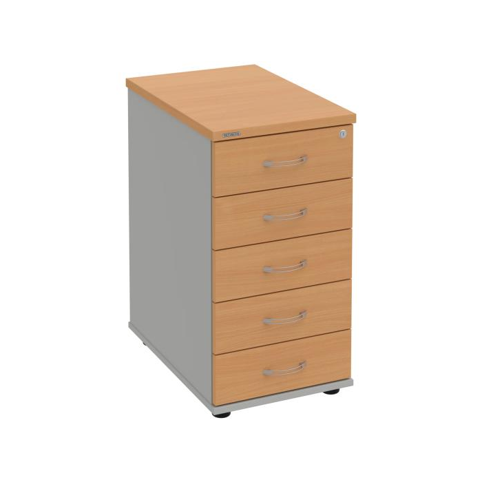 Kontajnery - všetko uložené a vždy poruke. Kontajnery sa väčšinou umiestňujú pod stoly. Mobilné modely sú vybavené kolieskami, je možné ich premiestniť podľa potreby. Základným materiálom korpusov je kvalitná laminovaná drevotriesková doska hrúbky 18 mm. Pre dlhšiu životnosť je na horný diel korpusu použitá doska, ktorej hrúbka je 25 mm. Korpusy a čelá zásuviek sú chránené proti poškodeniu hranou ABS 2 mm. Kontajnery sú vybavené zámkom s centrálnym zamykaním. Vďaka integrovanému systému STOP-CONTROL s centrálnym zámkom u väčšiny kontajnerov sa nemusíte báť prevrhnutiu kontajnera alebo prípadného privretia ruky. Systém zaručí, že pri otvorení jednej zásuvky sa ostatné zásuvky automaticky zablokujú. Zásuvky sú z plastu, ktorý je ľahko umývateľný a vhodný pre jednoduchú údržbu. Praktickou súčasťou vrchnej zásuvky je prehľadný organizér a priestorové deliace priečky. Vaše ceruzky, sponky a ďalšie kancelárske potreby budú vždy na poriadku. Organizér a deliace priečky sú súčasťou každého kontajnera. Na kontajnery Hobis sa vzťahuje päťročná záruka.