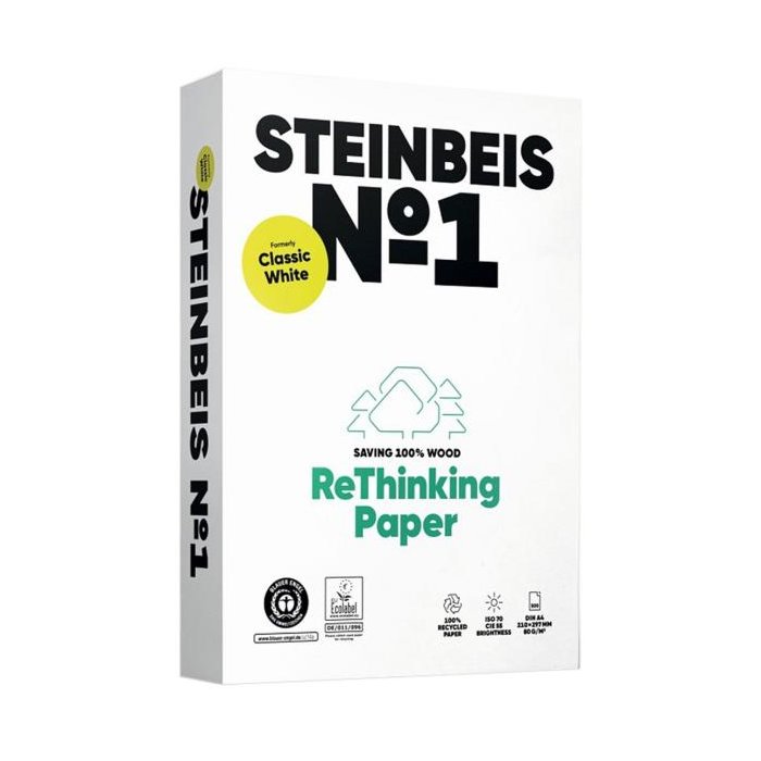 Steinbeis No. 1 možno použiť pre všetky súčasné laserové a atramentové tlačové aplikácie. Vyrobené zo 100 % zhodnoteného odpadu a s použitím jedinečných technologicky vyspelých procesov. Spracovaný bez akýchkoľvek bieliacich látok škodlivých pre životné prostredie (chlór, oxid chloričitý alebo iné halogénované bieliace činidlá), papier je certifikovaný podľa normy Blue Angel a environmentálnou značkou EÚ. Papier je možné po použití recyklovať.
