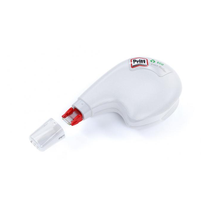 Prvá korekčná páska na svete vyrobená zo 100% recyklovateľných plastov. Aplikačný hrot je otočený oproti bežným korektorom o 90 °. Páska je vhodná na všetky bežné druhy papierov a fólií. Nanesený korekčný fi lm je suchý a umožňuje okamžité písanie. Nová technológia opravy textu zaručuje čistú a presnú korekciu. Na kópiách nezanecháva tmavé okraje a tiene. Šírka stopy 4,2 mm, návin 10 m. Väčšie balenie 10 ks.