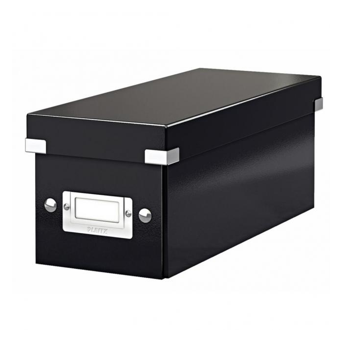 Multifunkčná atraktívna archivačná krabica vo výrazných farbách WOW vhodná na použitie v kancelárii i v domácnosti. CD alebo DVD v klasických plastových obaloch. Pevné a stabilné prevedenie. Materiál silný drevnatý kartón potiahnutý laminom. Úchyty, miesto na štítok, vystužené rohy krabice a spojovacie cvoky vyrobené z kovu. Krabica dodávaná rozložená. Veľmi skladná pri nepoužívaní. Rozmery 143 × 352 × 136 mm. Väčšie balenie 6 ks. Farba čierna.