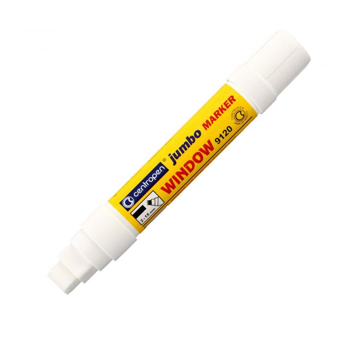 Špeciálny popisovač na okná, zrkadlá, výklady. Tekutá krieda na vodnej báze so silnými krycími schopnosťami, stierateľná. Zrezaný hrot, šírka stopy 2 - 15 mm. Väčšie balenie 5 ks v jednej farbe. Farba biela.