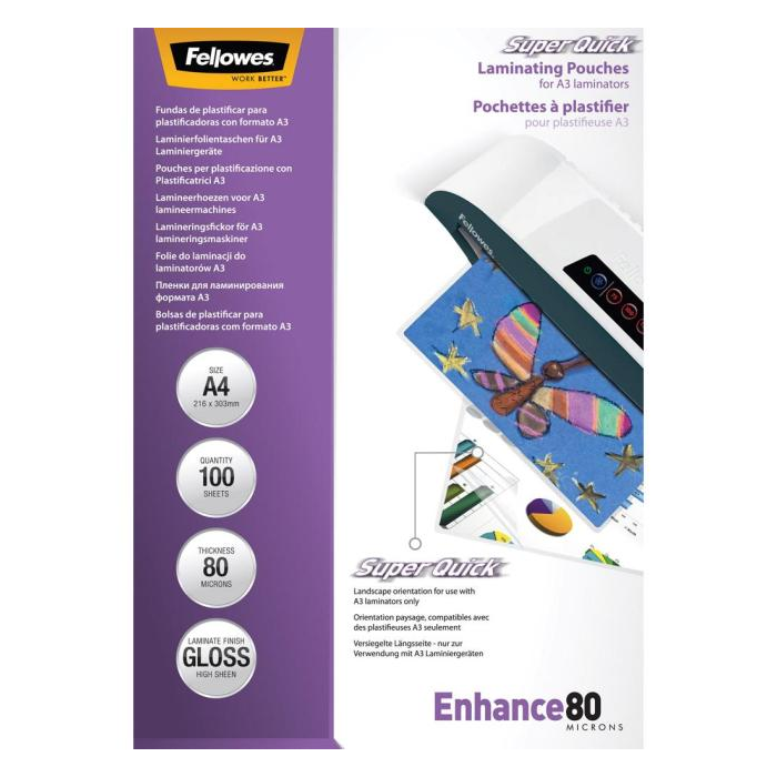 Laminovacie fólie Fellowes 216x303 A4 80mic Superquick