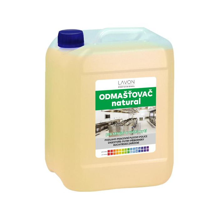 Lavon odmasťovač natural 5 l je špeciálny, silno alkalický, nízkopenivý čistič na vysoko znečistené podlahy a mastné umývateľné povrchy. Svoje uplatnenie si nájde v domácnosti, kuchyni, priemyselnej výrobe i gastronomických prevádzkach a reštauráciách. Popis vlastností odmasťovača plôch Lavon Prevedenie extra silný, pre strojné i ručné umývanie - priemysel, gastro a inštitúcie.