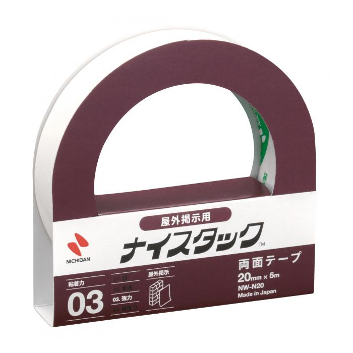 Obojstranne lepiaca páska, vyvinutá japonskou spoločnosťou Nichiban, ktorá ponúka riešenie na každú príležitosť. Inovatívnymi postupmi dosiahla spoločnosť Nichiban už storočnej tradície v oblasti adhezívnych technológií, ktoré pomáhajú v celom spektre priemyselného odvetvia aj v kanceláriách a domácnostiach po celom svete. Obojstranná páska na vonkajšie použitie drží skvele na nerovných povrchoch a stenách a odoláva poveternostným vplyvom. Väčšie balenie 10 ks. Rozmery 20 mm × 5 m. Farba biela.