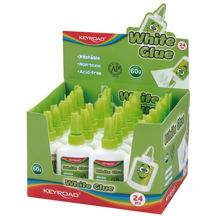 Ideálne lepidlo pre všetky druhy umenia a remesiel, na školské použitie, bezpečné pre deti. Neobsahuje rozpúšťadlá, netoxické, umývateľné. Hmotnosť: 60 g. Display 24 ks. Farba: biela.