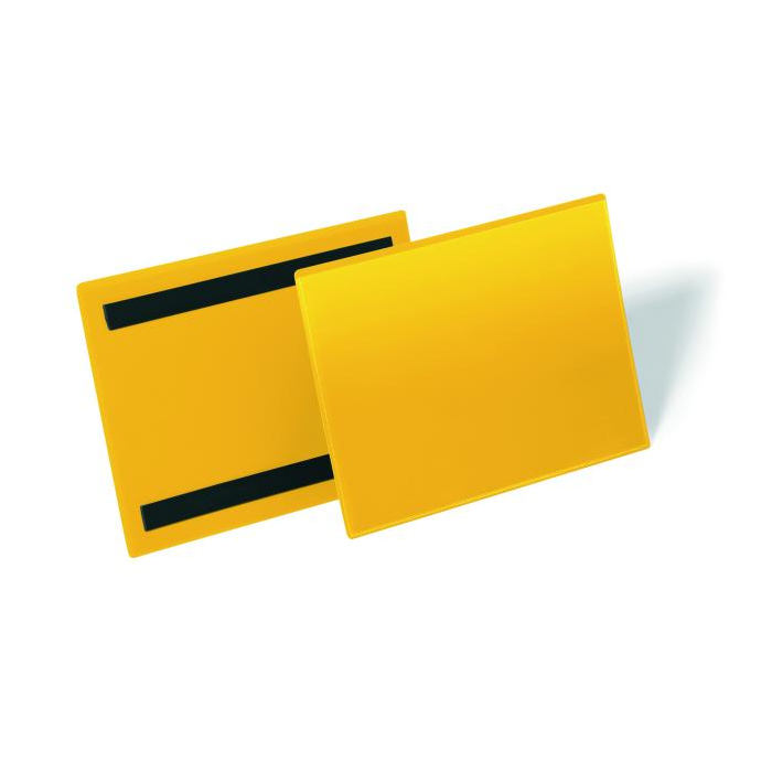 Vrecká s 2 magnetickými pásikmi na zadnej strane. Použiteľné na kovové plochy, ako regály, kovové steny a kontajnery. Farba žltá. Balenie 50 ks. Formát A5 na šírku.