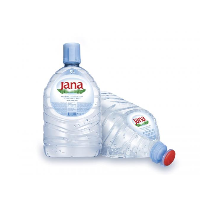 100% prírodná nesýtená minerálna voda s jedinečným a mimoriadne vyváženým minerálnym zložením obohatená o vápnik a horčík v ideálnom pomere 2:1. Obsahuje tiež oxid kremičitý, ktorý prispieva k zdravšej pleti, vlasom a nechtom. Popri ideálnej hodnote pH 7,4 má nízky obsah sodíka. Inovatívna 5 l fľaša môže nielen stáť, ale v chladničke i ležať. K tomuto účelu je dodávaný špeciálny uzáver, ku ktorému stačí iba priložiť pohár a k vode sa dostanete bez toho, aby ste fľašu museli z chladničky vyťahovať. Väčšie baleni 2 ks.Jana prírodná minerálna voda vyviera zo srdca pohoria Sv. Jany, z hĺbky 800 m. Neupravovaná. Zdroj: St. Jana, Gorica Svetojanska, Chorvátsko. Obsah katiónov (v mg/l): Vápnik Ca2+ 62,1