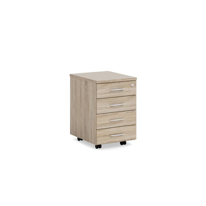 Mobilný kontajner BASIC, 4-zásuvkový s centrálnym zámkom + 2 kľúče, 41x67x50cm, dub Sonoma