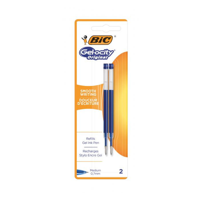 Náplň do gélových rollerov BIC. Farba modrá. Balenie 2 ks.