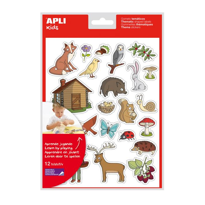 Vrecko s tematickými vzdelávacími nálepkami Les. Každé vrecko obsahuje 12 listov (276 nálepiek). Tento typ nálepky, vyvinutý v spolupráci s pedagógmi, pomáha deťom identifikovať pojmy, ktoré ich obklopujú v každodennom živote, ako sú lesné zvieratá a predmety. Zábavné ilustrácie im navyše umožnia obohatiť si slovnú zásobu a zároveň si rozvíjať motorické zručnosti. Odnímateľné samolepiace nálepky, aby si deti mohli opraviť svoje chyby. Ideálny formát pre školy vďaka svojmu rozsiahlemu obsahu. Okrem toho nálepky APLI spĺňajú najprísnejšie predpisy o kvalite a bezpečnosti: - Vyrobené v súlade s normami EN-71 a reťazcom spotrebiteľských skúšok FSC - Lepidlo na vodnej báze - Bez rozpúšťadiel - Papier ECF (bez elementárneho chlóru) - 100 % recyklovateľný materiál