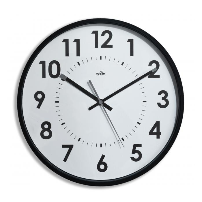 (2,8 cm) a čiernou sekundovou ručičkou. Materiál ABS plast, ochranné minerálne sklo, priemer 30 cm. Batéria AA je súčasťou balenia. Rám čierny.