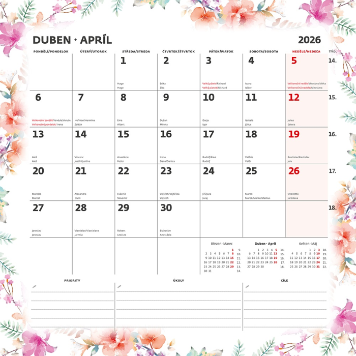 Nástenný kalendár plánovací 30 x 30 cm 2026