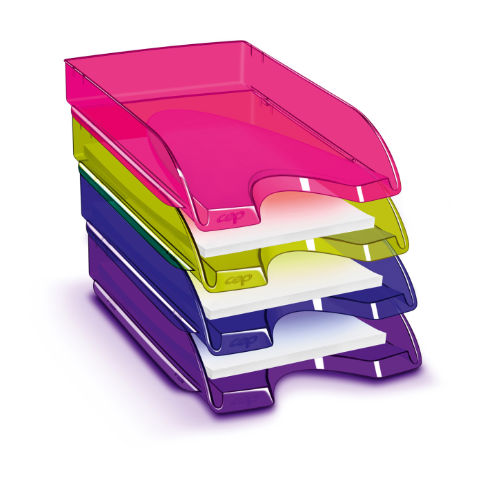 Vďaka štíhlym a elegantným líniám si tento odkladač nájde miesto nielen na stole, ale aj na bočnom stole alebo v skrini. Je vhodný na dokumenty do veľkosti 24 × 32 cm. Široký čelný výrez umožňuje ľahké vyberanie obsahu. Odkladač je stohovateľný vertikálne, aj stupňovito dozadu. Kapacita 450 listov (80 g / m²). Celkové rozmery 257 × 348 × 66 mm. Materiál 100% odolný vysokokvalitný plast. Jednotlivé kusy sa môžu navzájom jemne farebne líšiť. Väčšie balenie 10 ks. Farba transparentná fialová.