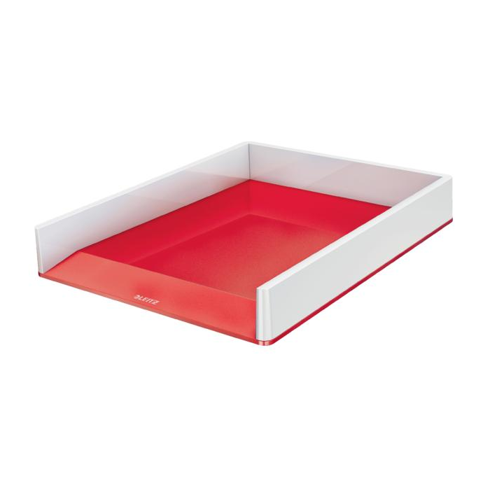 Stohovateľný kancelársky odkladač na dokumenty, časopisy a zložky v dvojfarebnom prevedení v metalických farbách WOW s lesklým povrchom. Farba biela/červená.