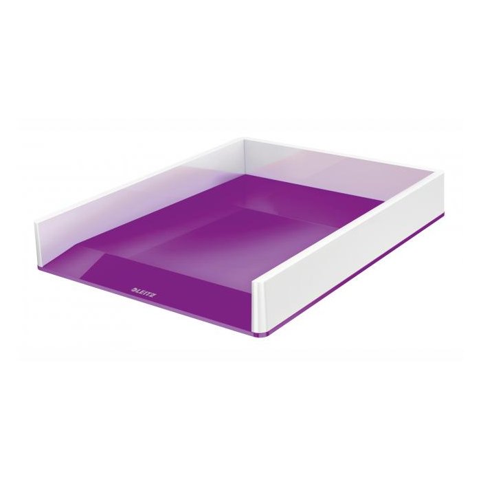 Stohovateľný kancelársky odkladač na dokumenty, časopisy a zložky v dvojfarebnom prevedení v metalických farbách WOW s lesklým povrchom. Farba purpurová.
