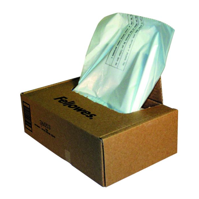 Odpadové vrecia pre skartovačky Fellowes. Objem 34 l, v balení 100 ks.