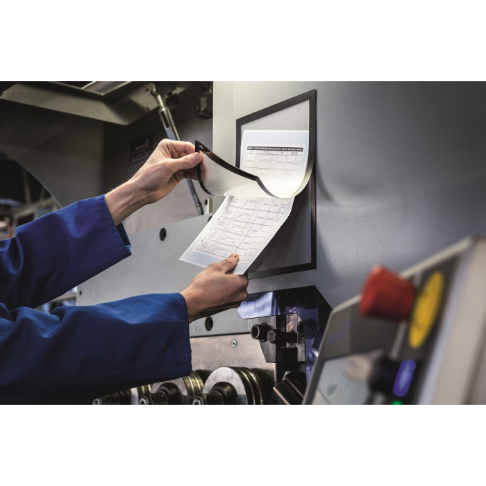 Panel s plne magnetickou zadnou časťou na posilnené držanie na kovových povrchoch. Jednoduché a rýchle vkladanie informácie formátu A4.