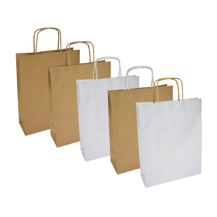 Papierová taška na víno a univerzálne použitie. Farba biela. Ušká stáčané. Cena za kus. Rozmery v mm
