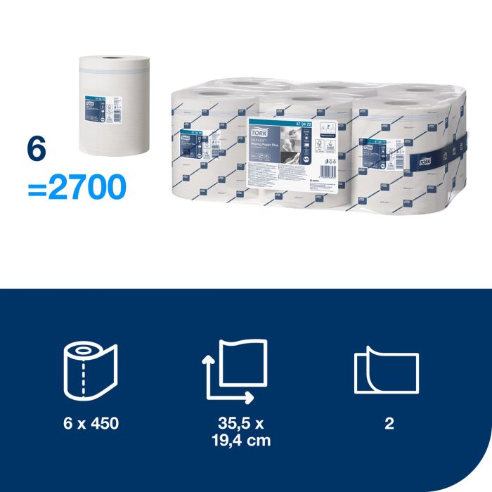 Viacúčelové papierové utierky 2 vrstvové sú ideálne na stieranie a ručné utieranie. Vhodné do zásobníka so stredovým odvíjaním na dávkovanie po jednom útržku TORK Refl ex™, ktorý znižuje spotrebu a minimalizuje riziko krížovej kontaminácie. Vydávanie po jednom útržku znižuje spotrebu až o 37 %. V predaji po balení (6 roliek).
