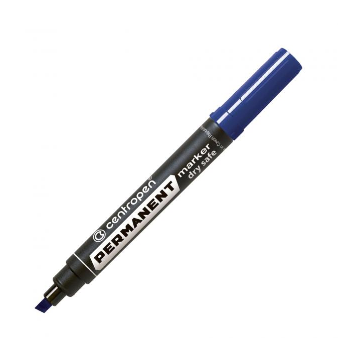 Permanentný popisovač s nevysýchajúcim atramentom (vydrží aj 14 dní bez vrchnáka) na alkoholovej báze, vhodný na väčšinu povrchov. Odolný voči vode, poveternostným podmienkam aj oderu. Hrot zrezaný, šírka stopy 2 - 5 mm. Väčšie balenie 10 ks v jednej farbe. Farba modrá.
