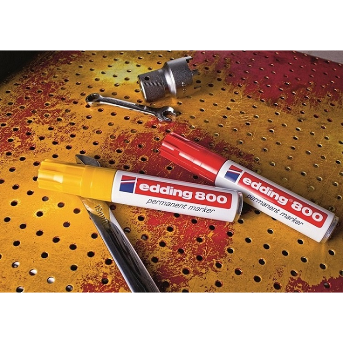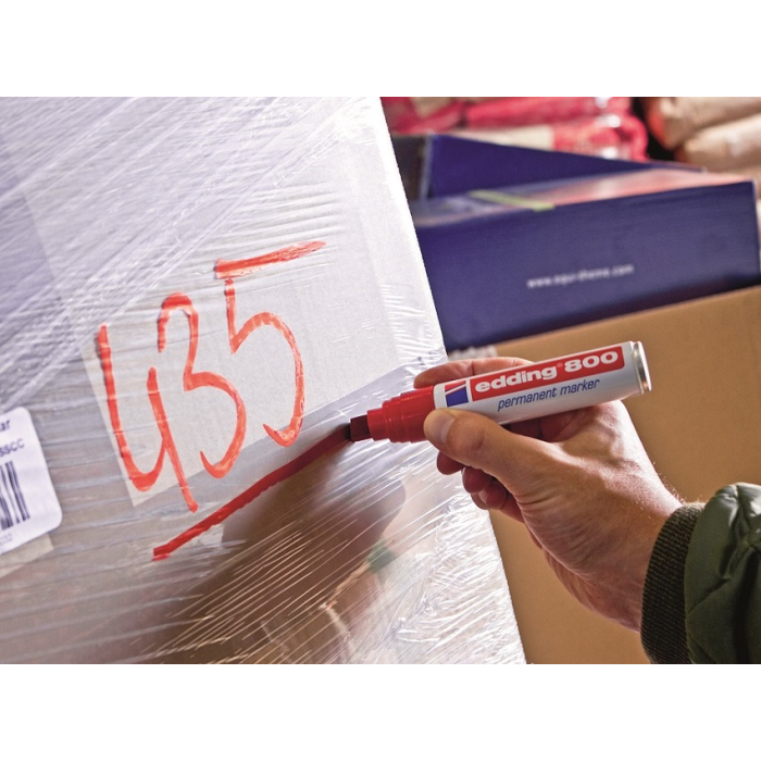 Permanentný popisovač s hliníkovým obalom a vymeniteľnou špičkou. Hrot zrezaný, šírka stopy 4-12 mm. Dopĺňateľný atramentom edding T 25. Väčšie balenie 5 ks.