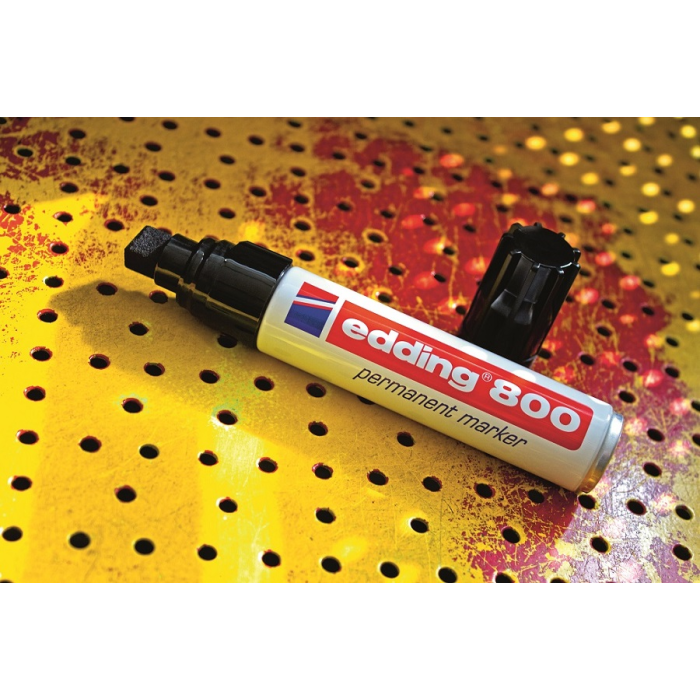 Permanentný popisovač s hliníkovým obalom a vymeniteľnou špičkou. Hrot zrezaný, šírka stopy 4-12 mm. Dopĺňateľný atramentom edding T 25. Väčšie balenie 5 ks.