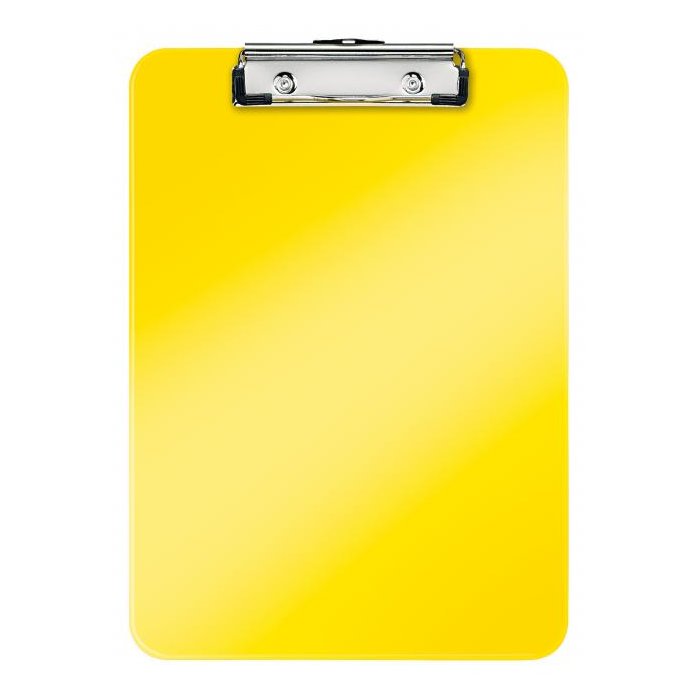 Pevná písacia podložka A4 na každodenné použitie v sviežich farbách WOW s dvojfarebným efektom. Silná kovová spona na uchytenie až 80 listov, háčik na zavesenie. Materiál polystyrol. Väčšie balenie 10 ks. Farba žltá.