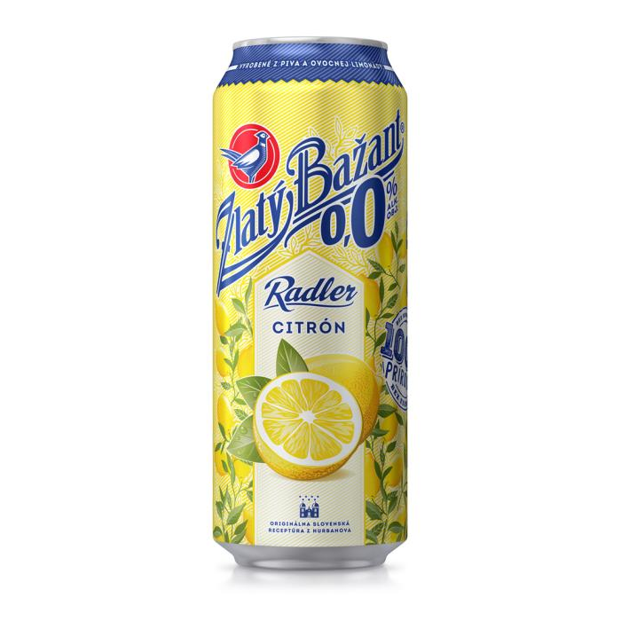 Osviežujúce nealkoholické pivá v plechovke s citrónovou príchuťou. 100 % prírodné, bez konzervantov a farbív. Zlatý Bažant 0,0 % je prvé slovenské pivo úplne bez alkoholu, ktoré si zachováva svoju plnú pivnú chuť. Je reakciou hurbanovského pivovaru na moderné trendy v životnom štýle spotrebiteľov a je určené všetkým, ktorí nechcú robiť kompromisy medzi plnou