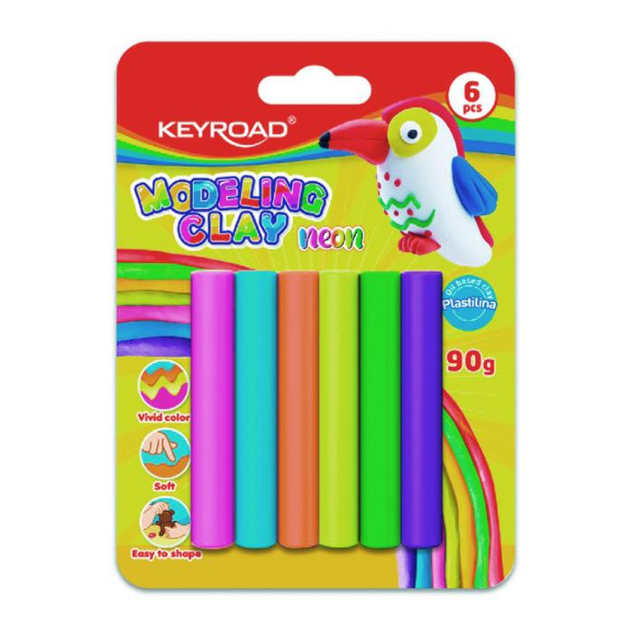 Plastelína KEYROAD neónová, blister 6 ks, mix farieb