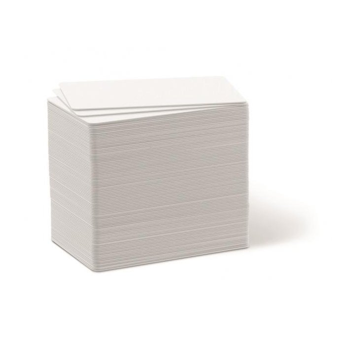 Plastové karty štandardnej hrúbky 0,76 mm na potlač plastových kariet v tlačiarni DURACARD ID 300. Rozmery 53,98 × 86,60 mm.