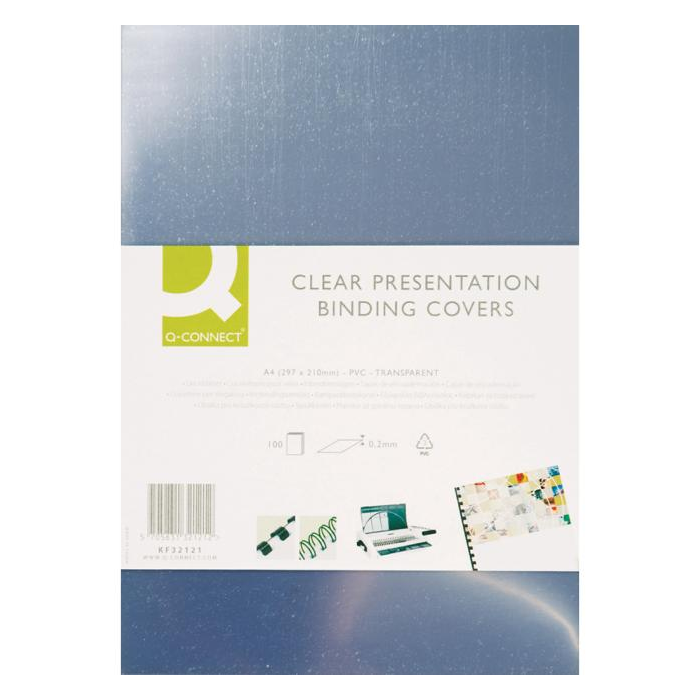 Krištáľovo čistá krycia fólia na viazanie hrebeňovej väzby s plastovými a drôtenými hrebeňmi. Balenie 100 kusov. Hrúbla 200 mic. Formát A4.