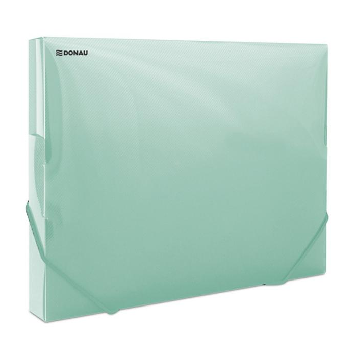 Plastový box s tromi chlopňami vyrobený zo silného polypropylénu 700 µm, uzatvárateľný gumičkou. Kapacita cca 300 listov. Rozmery (v×hך) 327×250×32 mm. Väčšie balenie 20 ks.