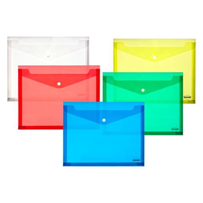 Transparentný plastový obal na spisy s cvokom, formát A4, PP hrúbky 0,18mm, rôzne farby, max. na 250 listov.