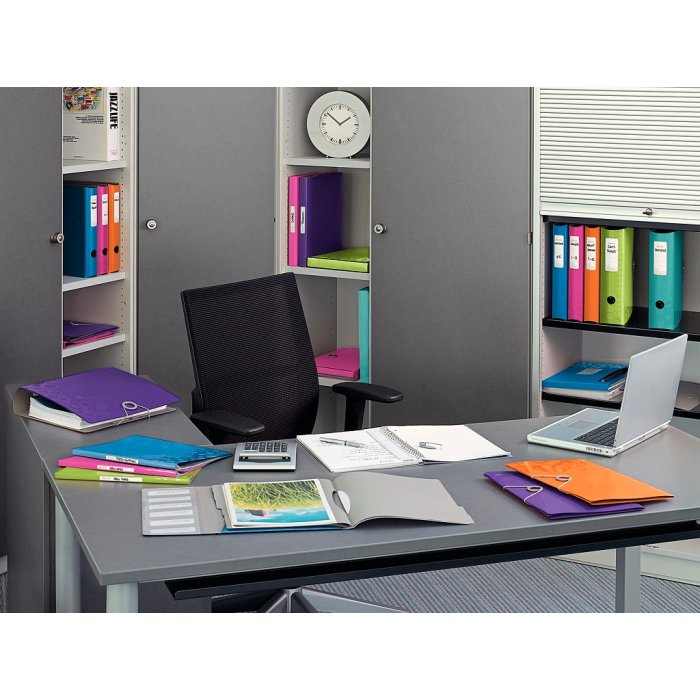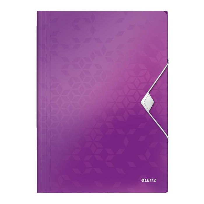 Trojchlopňový obal na dokumenty do formátu A4 z polypropylénu. V dizajne rady WOW v žiarivých farbách. Uzatváranie uchytením na gumičku. Kapacita 150 listov. Väčšie balenie 10 ks. Farba purpurová.